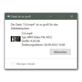 "Die Datei "xyz.mp4" ist zu gross für das Zieldateisystem."